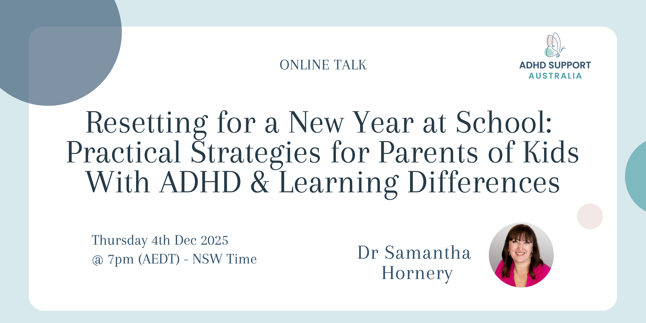 Online - Sydney Time , AustraliaOur October speakers are Claire Pech and Amanda Krulis who will be talking about Career Planning With ADHD at School - Guiding ADHD Families Through the Final Years on Thursday […]